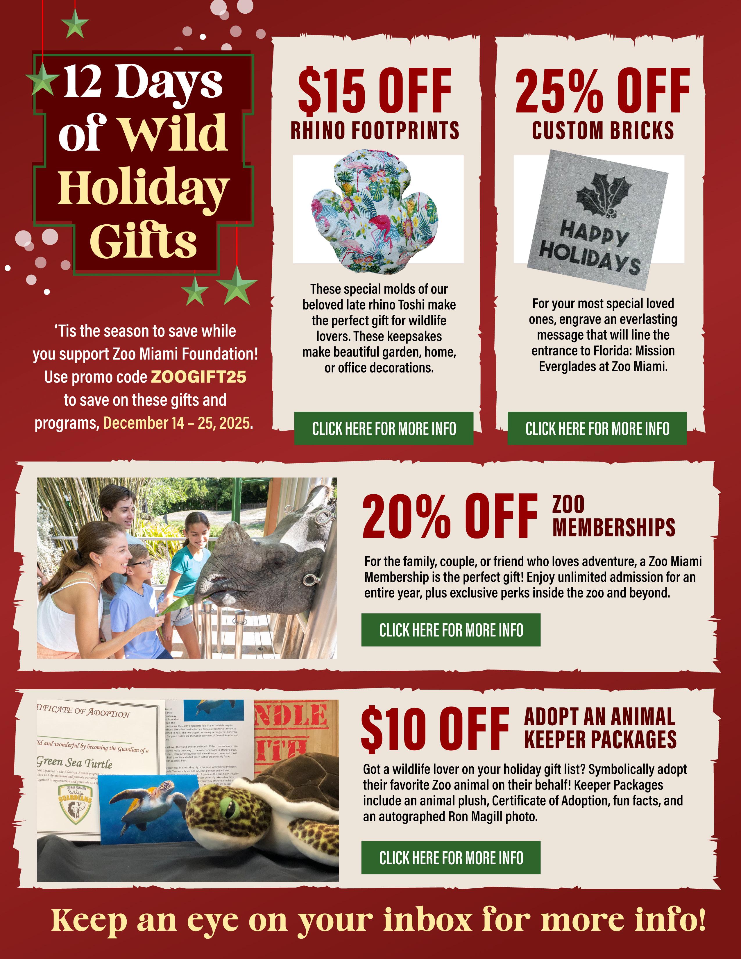 While we have mourned many losses, we have also been fortunate to celebrate the births and arrivals of several new animals including a flamingo hatchling, meerkat, banteng calf, and a critically endangered Jamaican iguana hatchling. The highs and lows that come with animal care remind us of the miracle that every life and every creature represent. Thank you for your commitment, support, and generosity throughout every season at Zoo Miami. We look forward to creating more memories and celebrating milestones with you as we move into a brand-new year.