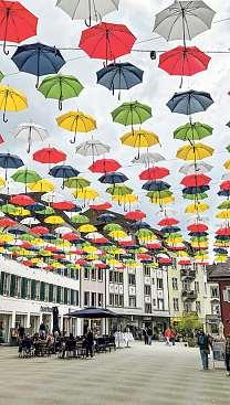 Noch war nicht ganz klar, ob sie Schutz gegen den Regen oder vor zu viel Sonne bieten sollen, als sie vergangene Woche einer nach dem anderen per Knopfdruck geöffnet wurden: Nach 2020 schmücken für die Sommermonate zum zweiten Mal rund 500 bunte Schirme die Oltner Kirchgasse und sollen neben Schatten auch ein attraktives optisches Erlebnis bringen. Die Einwohnergemeinde und Gewerbe Olten hatten sich entschieden, die allererste Beschattungsaktion, welche von den vier bisherigen auch gleich auf das beste Echo gestossen war, mit Unterstützung von Käser AG, sbo und Stirnimann AG zu wiederholen. Die Einwohnergemeinde hatte für die Aktion 20000 Franken ins Budget eingestellt. Nach zweiwöchigen Montagearbeiten präsentierte sich die Kirchgasse nach der Montageaktion rechtzeitig auf das letzte Wochenende hin, als in Olten der Startschuss in die Weltcup-Saison der OLLäuferinnen und OL-Läufer fiel, von ihrer bunten Seite. MGT