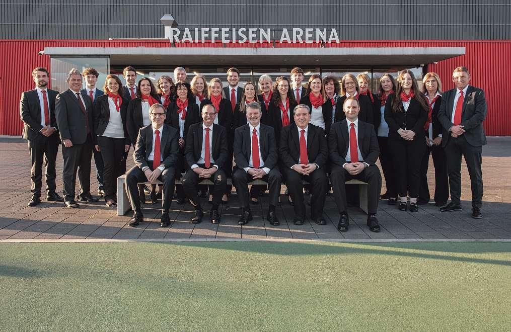 Gut gelaunt (v.l.): Thomas Fluri (verabschiedeter Verwaltungsratspräsident), Christoph ZVG Zeltner (neuer Verwaltungsrat), Rolf Riechsteiner (ausgetretener Verwaltungsrat), Markus Schindelholz (Geschäftsführer) und Freddy Kreuchi (Verwaltungsratspräsident).