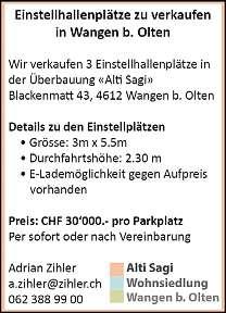 – Einstellhalle CHF 100.00, Aussen-PP CHF 50.–