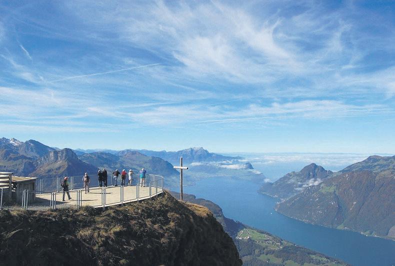 • Aussicht auf die Zentralschweizer Alpen, den Vierwaldstättersee und die umliegenden Berge