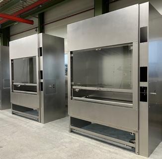 Wieder stehen drei kundenspezifische Edelstahl-Sicherheitskabinen für die Herstellung von Arzneimittel bereit für die Ausrüstung und FAT (Werksabnahme). Demnächst werden sie demontiert und zwei davon treten eine Reise nach Spanien an.