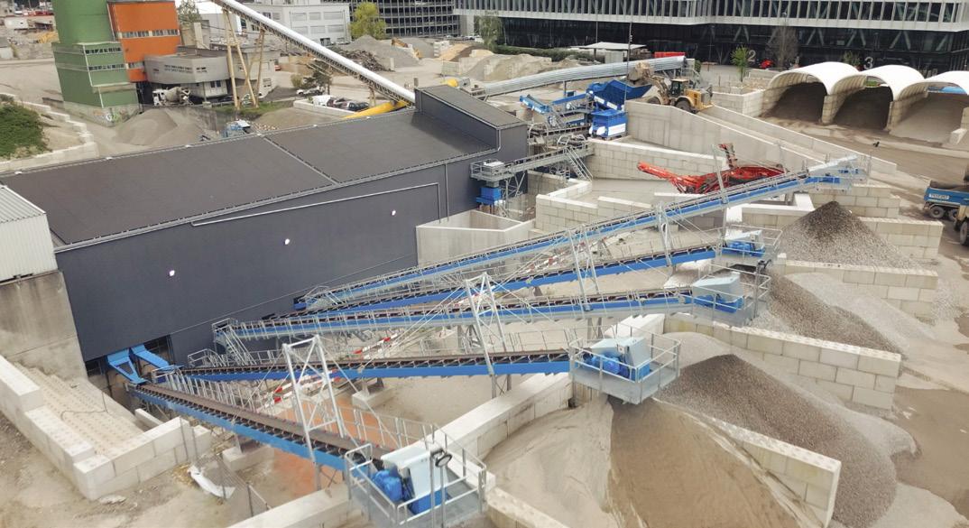 Der Rückbau der bestehenden und die Montage der neuen Dachkonstruktion erfolgten über die neu eingebaute Aushubwa schanlage und deren Förderbänder. Die Konstruktion mit einem Gewicht von 11.5 Tonnen hatten wir am Boden vormontiert, be vor wir sie mit unserem Pneukran LTM 1220-5.2 auf die beste henden Hallenstützen hoben. Unser Kran- und Montageteam meisterte diese anspruchsvolle Aufgabe souverän, so dass ohne Unterbrechung mit der Verlegung der neuen Dacheindeckung fortgefahren werden konnte.