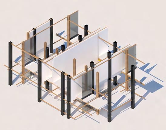 We modeled by choosing the materials of the column such as wood and steel to achieve the connection of various Joinery, including the use of walls made of solid and translucent materials to create perceptions of